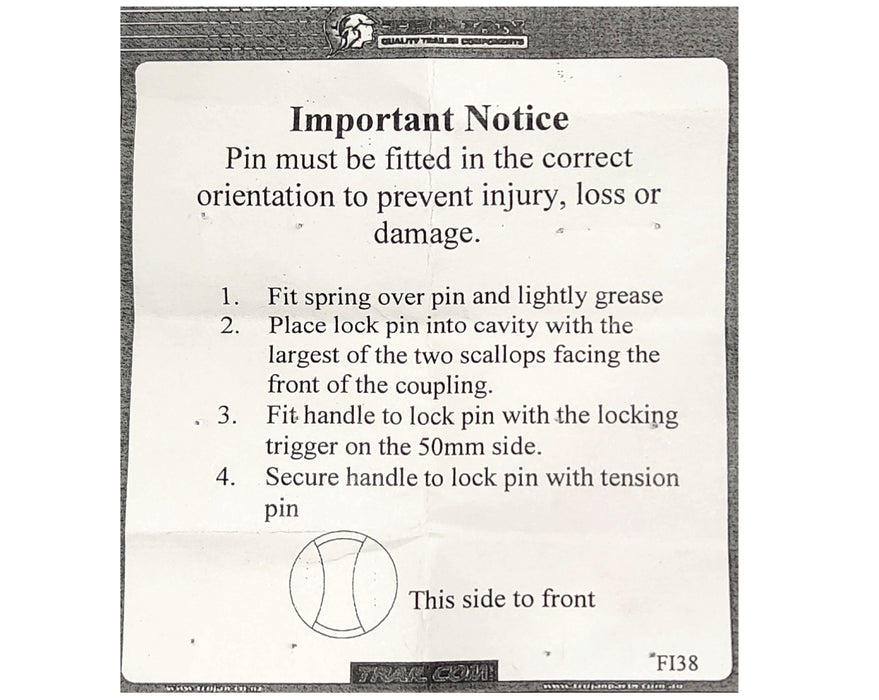 Pin must be fitted in the correct orientation to prevent injury, loss or damage.